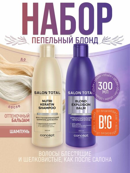 {"widgets":{"@card/UniversalPromoBadge":{"/content/page/fancyPage/universalPromoBadge":{"wrapperProps":{"margins":{"bottom":"3"}},"initialTime":1759498770227,"offerComposeId":"79485828"}}},"meta":{"/content/page/fancyPage/universalPromoBadge":{"name":"@card/UniversalPromoBadge"}},"collections":{"productServiceSnippets":{"79485828":{"productSnippet":{"type":"MODEL_CARD_LAYOUT","productPayload":{"title":{"value":"Concept Salon Total Набор оттеночный бальзам Пепельный блонд + шампунь с кератином"},"badges":{},"wishlistButton":{"mskuId":102851024633,"businessId":71191290,"modelId":79485828,"oskuId":102851034968},"rating":{"reviewsCount":26,"ratingCountStats":{"cnt3":6,"cnt4":6,"cnt2":2,"cnt1":4,"cnt5":90},"ratingValue":4.6,"ratingCount":108},"gallery":{"galleryType":"VISUAL","mediaItems":[{"type":"IMAGE","picture":{"height":1600,"width":1200,"title":"Concept Salon Total Набор оттеночный бальзам Пепельный блонд + шампунь с кератином","baseUrl":"https://avatars.mds.yandex.net/get-mpic/14353726/2a00000195dcba492e8f56218e9761ad38d9/"}},{"type":"IMAGE","picture":{"height":1600,"width":1200,"title":"Concept Salon Total Набор оттеночный бальзам Пепельный блонд + шампунь с кератином","baseUrl":"https://avatars.mds.yandex.net/get-mpic/14367910/2a00000195dbf974fb747d21bbdc2bf83004/"}},{"type":"IMAGE","picture":{"height":1600,"width":1200,"title":"Concept Salon Total Набор оттеночный бальзам Пепельный блонд + шампунь с кератином","baseUrl":"https://avatars.mds.yandex.net/get-mpic/7698402/2a00000195dbf974fbcf8b0dd5ac4e38d0bc/"}},{"type":"IMAGE","picture":{"height":1600,"width":1200,"title":"Concept Salon Total Набор оттеночный бальзам Пепельный блонд + шампунь с кератином","baseUrl":"https://avatars.mds.yandex.net/get-mpic/13894603/2a00000195dbf974fb6cc8e803ef0c19a6d2/"}},{"type":"IMAGE","picture":{"height":1600,"width":1200,"title":"Concept Salon Total Набор оттеночный бальзам Пепельный блонд + шампунь с кератином","baseUrl":"https://avatars.mds.yandex.net/get-mpic/12516504/2a00000195dbf975ac82cc2d0bf637f704b9/"}},{"type":"IMAGE","picture":{"height":1600,"width":1200,"title":"Concept Salon Total Набор оттеночный бальзам Пепельный блонд + шампунь с кератином","baseUrl":"https://avatars.mds.yandex.net/get-mpic/11414233/2a00000195dcba492ea277aed32057ce8965/"}},{"type":"IMAGE","picture":{"height":1600,"width":1200,"title":"Concept Salon Total Набор оттеночный бальзам Пепельный блонд + шампунь с кератином","baseUrl":"https://avatars.mds.yandex.net/get-mpic/14706361/2a00000195dcba49fa04527b9fb2860dc4b6/"}},{"type":"IMAGE","picture":{"height":1600,"width":1200,"title":"Concept Salon Total Набор оттеночный бальзам Пепельный блонд + шампунь с кератином","baseUrl":"https://avatars.mds.yandex.net/get-mpic/5221946/2a00000195dcba41295625afeea02ac32979/"}},{"type":"IMAGE","picture":{"height":1600,"width":1200,"title":"Concept Salon Total Набор оттеночный бальзам Пепельный блонд + шампунь с кератином","baseUrl":"https://avatars.mds.yandex.net/get-mpic/6259165/2a00000195dcba49d77fe3dd70577f886f04/"}},{"type":"IMAGE","picture":{"height":1600,"width":1200,"title":"Concept Salon Total Набор оттеночный бальзам Пепельный блонд + шампунь с кератином","baseUrl":"https://avatars.mds.yandex.net/get-mpic/11240005/2a00000195dcba492dbe41921c7aa4f1dd96/"}}]},"snippetStyle":"NORMAL"},"baobabPayload":{"marketSku":"102851024633","type":"offer","isUltima":false,"modelId":79485828,"snippet_type":"product","wareId":"out-of-stock","oskuId":102851034968,"hid":64223718,"isExpress":false,"vendorId":70627395}}}}}}