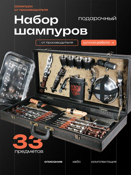 {"widgets":{"@card/UniversalPromoBadge":{"/content/page/fancyPage/universalPromoBadge":{"wrapperProps":{"margins":{"bottom":"3"}},"initialTime":1759591305137,"offerComposeId":"1292261813"}}},"meta":{"/content/page/fancyPage/universalPromoBadge":{"name":"@card/UniversalPromoBadge"}},"collections":{"productServiceSnippets":{"1292261813":{"productSnippet":{"type":"MODEL_CARD_LAYOUT","productPayload":{"title":{"value":"Набор шампуров подарочный с деревянными ручками в кейсе, подарок мужчине"},"badges":{},"wishlistButton":{"mskuId":102460915593,"businessId":77908204,"modelId":1292261813,"oskuId":102460915593},"rating":{"reviewsCount":83,"ratingCountStats":{"cnt3":11,"cnt4":14,"cnt2":4,"cnt1":10,"cnt5":270},"ratingValue":4.7,"ratingCount":309},"gallery":{"galleryType":"MIXED","mediaItems":[{"type":"IMAGE","picture":{"height":1200,"width":900,"title":"Набор шампуров подарочный с деревянными ручками в кейсе, подарок мужчине","baseUrl":"https://avatars.mds.yandex.net/get-mpic/16186641/2a00000198d1143911e90c624b298ce21732/"}},{"type":"IMAGE","picture":{"height":1200,"width":900,"title":"Набор шампуров подарочный с деревянными ручками в кейсе, подарок мужчине","baseUrl":"https://avatars.mds.yandex.net/get-mpic/18384585/2a00000198d10e186842eeebd7d6d29d810c/"}},{"type":"IMAGE","picture":{"height":1200,"width":900,"title":"Набор шампуров подарочный с деревянными ручками в кейсе, подарок мужчине","baseUrl":"https://avatars.mds.yandex.net/get-mpic/16166074/2a00000198cbf338f4036725e9cba3afc64f/"}},{"type":"IMAGE","picture":{"height":1200,"width":900,"title":"Набор шампуров подарочный с деревянными ручками в кейсе, подарок мужчине","baseUrl":"https://avatars.mds.yandex.net/get-mpic/16154795/2a00000198d1143912a7c36983f0d10dd8d1/"}},{"type":"IMAGE","picture":{"height":1200,"width":900,"title":"Набор шампуров подарочный с деревянными ручками в кейсе, подарок мужчине","baseUrl":"https://avatars.mds.yandex.net/get-mpic/13293703/2a0000019813d37876266af657ede4fda795/"}},{"type":"IMAGE","picture":{"height":1200,"width":900,"title":"Набор шампуров подарочный с деревянными ручками в кейсе, подарок мужчине","baseUrl":"https://avatars.mds.yandex.net/get-mpic/16973251/2a00000198d114391151aa646ca9979bb53c/"}},{"type":"IMAGE","picture":{"height":1200,"width":900,"title":"Набор шампуров подарочный с деревянными ручками в кейсе, подарок мужчине","baseUrl":"https://avatars.mds.yandex.net/get-mpic/16490989/2a00000198d11439111ab72f8a867754f257/"}},{"type":"IMAGE","picture":{"height":1200,"width":900,"title":"Набор шампуров подарочный с деревянными ручками в кейсе, подарок мужчине","baseUrl":"https://avatars.mds.yandex.net/get-mpic/15265369/2a00000198d11439114723bc72b8bc114011/"}},{"type":"IMAGE","picture":{"height":1200,"width":900,"title":"Набор шампуров подарочный с деревянными ручками в кейсе, подарок мужчине","baseUrl":"https://avatars.mds.yandex.net/get-mpic/16447976/2a0000019813d378fdd75375657cddb91250/"}},{"type":"IMAGE","picture":{"height":1200,"width":900,"title":"Набор шампуров подарочный с деревянными ручками в кейсе, подарок мужчине","baseUrl":"https://avatars.mds.yandex.net/get-mpic/16166074/2a00000198d114391207e209b5b9b4c7153c/"}},{"type":"IMAGE","picture":{"height":1200,"width":900,"title":"Набор шампуров подарочный с деревянными ручками в кейсе, подарок мужчине","baseUrl":"https://avatars.mds.yandex.net/get-mpic/16889250/2a00000198d114391336c8ff11b880e2fd75/"}},{"type":"IMAGE","picture":{"height":1200,"width":900,"title":"Набор шампуров подарочный с деревянными ручками в кейсе, подарок мужчине","baseUrl":"https://avatars.mds.yandex.net/get-mpic/15378816/2a00000198d1143911306e3eefab8513e479/"}},{"type":"IMAGE","picture":{"height":1200,"width":900,"title":"Набор шампуров подарочный с деревянными ручками в кейсе, подарок мужчине","baseUrl":"https://avatars.mds.yandex.net/get-mpic/16146676/2a00000198d10e1868d3e8d234827fab92a8/"}}]},"snippetStyle":"NORMAL"},"baobabPayload":{"marketSku":"102460915593","type":"offer","isUltima":false,"modelId":1292261813,"snippet_type":"product","wareId":"out-of-stock","oskuId":102460915593,"hid":60451589,"isExpress":false,"vendorId":15728405}}}}}}