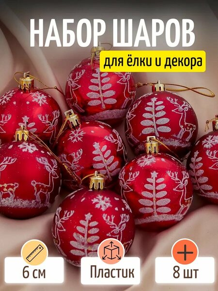Создайте неповторимую атмосферу праздника с набором новогодних шаров «Оленёнок у ёлочки»! Изысканные украшения диаметром 6 см в благородном красно-белом сочетании превратят ваш дом в настоящую сказку, наполненную теплом и уютом. Роскошный комплект из 8 шаров станет центральным элементом праздничного декора. Сочетание красного и белого цветов символизирует чистоту, искреннюю любовь и душевную теплоту, создавая особую атмосферу волшебства и уюта в вашем доме. Очаровательный дизайн с изображением милого оленёнка и ёлочки придаёт украшениям особую душевность и очарование, делая их не просто декором, а настоящим произведением искусства. Превосходный подарок на Новый год — этот набор станет замечательным презентом для тех, кто ценит элегантность и душевность в праздничном декоре. Он поможет создать неповторимую атмосферу волшебства в любом доме, даря радость и вдохновение в праздничные дни. Универсальность сочетания красного и белого позволяет украшениям гармонично вписываться в любой праздничный интерьер. Они идеально дополняют резные снежинки и другие элементы декора, создавая целостную композицию. Высокое качество исполнения гарантирует долговечность украшений. Прочный материал и надёжная роспись сохраняют яркость и красоту на протяжении многих лет использования. Позвольте этим очаровательным шарам рассказать вашу новогоднюю историю! Их нежное сочетание цветов и милый дизайн создадут атмосферу душевного тепла и праздничного волшебства, наполняя каждый день предвкушением чудес и радости.