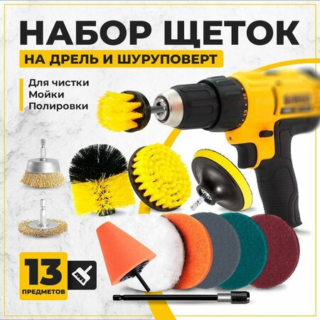 Набор щеток насадок на дрель и шуруповерт включает в себя полезные инструменты для удобной уборки, чистки и полировки любых поверхностей. Он поставляется в разных комплектациях, и, в зависимости от комплектации (указанной на картинке), в нём можно найти: щетку для уборки, щетку для мытья окон, насадку на дрель для полировки, щетку для машины, насадку на дрель шлифовальную и иные полезные инструменты! Данный набор включает три щетки на шуруповерт средней жёсткости, которые облегчат уборку в труднодоступных местах и удаление даже стойких загрязнений. Они отлично подойдут для чистки душа, ванной, плитки и мрамора. Также в набор входят два диска для полировки поверхностей с удобным держателем. Красный диск (средний) подходит для бережной полировки и очистки стали, плитки, раковин или линолеума. Зелёный диск (жёсткий) подходит для удаления накипи и известкового налёта с посуды, кастрюль, сковородок и другой кухонной утвари. Кроме этого, набор включает ряд инструментов для шлифовки и полировки металлов и жёстких поверхностей, быстро удаляющих нагар, грязь и ржавчину с любых поверхностей, а также удлинитель для патрона, облегчающий уборку в труднодоступных местах. Насадка на шуруповерт и щетка на шуруповерт отлично подойдут для поддержания чистоты в квартире, доме, машине, офисе, на заводах и предприятиях. Это незаменимые инструменты, которые сильно упростят наведение порядка в любых локациях, а также помогут отполировать, почистить и помыть буквально что угодно. Благодаря надёжному креплению, щётки не будут выпадать из патрона шуруповёрта или дрели, надёжно фиксируясь в разъёме и сильно облегчая механическую работу с поверхностями. Насадка на дрель щетка – это идеальный выбор для чистки салонов автомобилей и автомобильных дисков, для чистки посуды со стойкими загрязнениями, для удаления ржавчины и накипи с металла или бытовой техники, а также для поддержания порядка на кухне, в санузле, в спальне, в гостиной и даже в гараже! Набор сильно облегчит процесс уборки в труднодоступных местах, а также поможет поддерживать хорошее состояние различных инструментов, кухонной утвари и другого инвентаря. Щетка насадка на дрель и шуруповёрт – это удобный инструмент, который станет вашим незаменимым средством для поддержания чистоты и облегчит процесс уборки, сделав его куда быстрее и приятнее!
