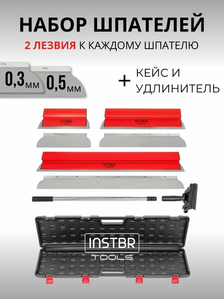 Набор шпателей для шпаклевки INSTBR 3шт (30-50-80см) с запасными лезвиями, в кейсе
