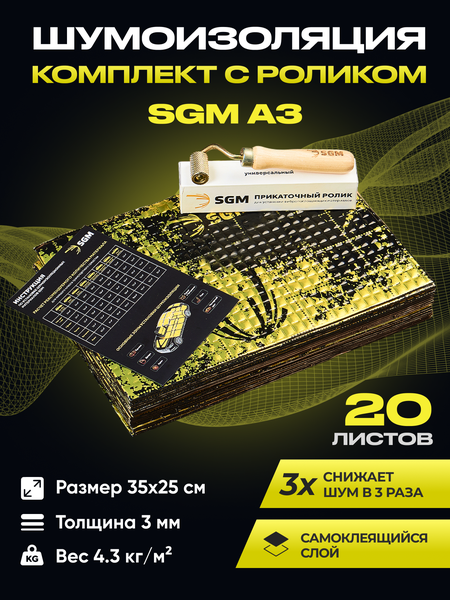 Комплект виброизоляции с роликом SGM А3 обеспечивает превосходную звукоизоляцию, улучшая комфорт в салоне автомобиля и минимизируя шум с улицы. Комплект состоит из 20 листов А3, с толщиной алюминиевой фольги 100 мкм. В качестве основного компонента используется мастика, обладающая полимерной самоклеящейся композицией, что обеспечивает надежную адгезию к поверхности автомобиля. Размеры листов составляют 0.35 x 0.25 м, толщина 3 мм. КМП - 0,4. Рабочий диапазон температур от -40°C до +120°C. Дополнительно в комплекте предусмотрен универсальный прикаточный валик, который идеально подойдет для раскатки виброизоляции во всех зонах автомобиля. Валик обеспечивает равномерное прилегание и оптимальную адгезию, а также предотвращает появление воздушных пузырей и непроклеенных мест. Шумка для авто используется для капота, пола салона, арок, дверей, тоннеля, крыша салона, потолок, багажник, крышка (полки) багажника, перегородка моторного отсека со стороны салона авто. Автомобильная шумоизоляция без проблем монтируется на подкрылки со стороны арок и отлично подойдут для защиты картера. Монтаж шумоизоляции: 1. Перед установкой звукоизоляционного материала тщательно очистите и обезжирьте поверхность - она должна быть сухой и чистой. 2. Не снимая защитной пленки, приложите лист материала к поверхности, которую хотите звукоизолировать. Убедитесь, что звукопоглощающий материал полностью покрывает поверхность данного элемента. 3. Осторожно снимите защитную пленку и прикрепите лист материала к рабочей поверхности. Тщательно разгладьте его руками, чтобы удалить все пузырьки воздуха снизу. 4. Обработайте материал валиком, чтобы разгладить текстуру фольги. В ассортименте магазина присутствуют вибропоглощающий, шумопоглощающий и звукопоглощающий материалы толщиной 2мм, 3мм, 4мм. виброшумоизоляция, шумовиброизоляция, шумо изоляция, шумоподавление вибропласт.