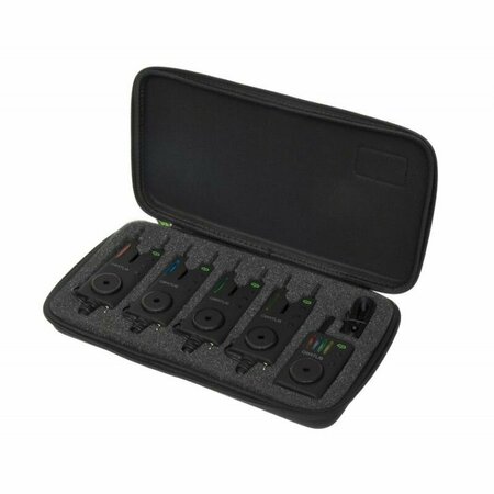 Carp Pro Cratus 4+1 (6910-004) – набор электронных сигнализаторов поклевки с ресивером, размещенный в удобном кейсе. В набор входит 4 сигнализатора с LED-индикаторами красного, синего, зеленого и желтого свечения плюс ресивер и ремешок для него. Сигнализаторы Carp Pro Cratus – это простые и надежные электронные помощники карпятника. Они достаточно компактны и хорошо защищены от проникновения влаги. Каждый сигнализатор оборудован съемными ограничителями Snag Ears, которые защищают удилище от падения при порывах ветра или мощных боковых поклевках. На передней панели сигнализатора расположен световой индикатор поклевки, состоящий из 6 светодиодов, и 3 кнопки для регулировки громкости звука, его тональности, а также чувствительности сигнализатора. Каждая из регулировок имеет 6 уровней, которые отражаются на индикаторе в процессе настройки. Кроме того, бегущей дорожкой индикатор демонстрирует направление поклевки: от берега или в берег. На корпусе сигнализатора предусмотрен разъем для подключения механического индикатора поклевки (свингера). Вдобавок, данная модель CP Cratus имеет функцию «Ночной режим». Звук на сигнализаторах можно отключить, оставив звуковое оповещение только на ресивере. При этом ресивер точно передает выставленную тональность звука от каждого из сигнализаторов, а уровень громкости можно выставить соответствующей кнопкой. На передней панели ресивера размещены световые индикаторы поклевки – по цвету соответствующие каждому из сигнализаторов. При поклевке индикатор ресивера дублирует ее направление с показаний сработавшего сигнализатора. Также имеется функция памяти: можно посмотреть на каком из сигнализаторов произошла последняя сработка. Ресивер осуществляет уверенный прием на расстоянии 100-150 м. Для питания ресивера и сигнализаторов используется один элемент ААА с напряжением 1,5 В. Полужесткий кейс на молнии выполнен из прочного синтетического материала. Он надежно защищает электронные устройства Carp Pro Cratus 4+1 от пыли и влаги.
