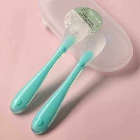 Набор силиконовых ложек для кормления, 2 шт, цвет бирюзовый 9037712