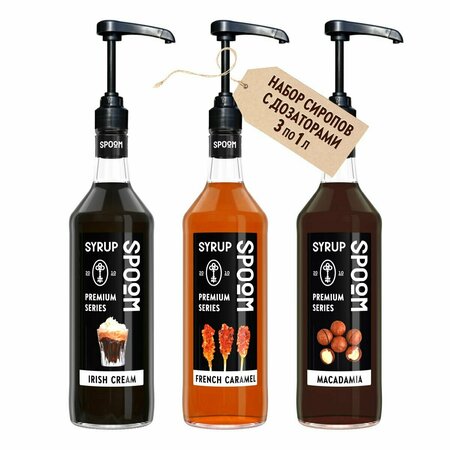 Набор сиропов Spoom - это отличный подарок для себя и своих близких. Набор состоит из 3 бутылок сиропов, объемом 1 л каждая. Также в набор входят 3 шт помпы-дозатора в подарок. Сиропы прекрасно подходят для кофе, чая, коктейлей, лимонадов, десертов и выпечки, напиток или еда станут вкуснее и ароматнее. Набор сиропов станет прекрасным подарком на любой праздник, будь то свадьба, день рождения или новый год. Вы можете сделать подарок подруге, парню или маме, так как он понравится и мужчине и женщине, вкусняшки любят все.