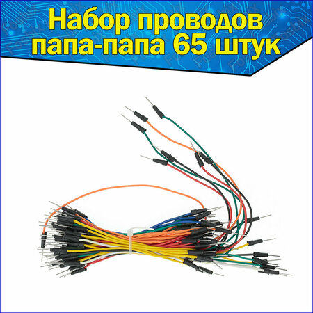 Набор соединительных проводов 65 перемычек папа-папа с длинной 12, 16, 20 и 24 см. Кабели используются для быстрого подключения компонентов в проектах на Ардуино. Удобно использовать с беспаечными макетными платами. Провода папа-папа. Предназначены для работ с ардуино и беспаечными макетными платами. Гибкие шлейфы незаменимы для любого владельца макетной платы, который увлечен созданием систем мехатроники и программированием роботов. Наш товар находят по запросам: arduino роботы робототехника robot ардуино электроника умный дом набор ардуино электронный конструктор Набор для моделирования Arduino Kit робототехника для детей набор для пайки для ардуино проектов самостоятельная сборка развивающий подарок пайка для начинающих Соединительные провода для макетной платы. Набор соединительных проводов папа-папа 65 штук Arduino & Кабели 65 шт. для ардуино 12/16/20/24 см. Датчики модули arduino, набор роботы робототехника robot, ардуино uno, nano, mega promini, электроника, умный дом, набор ардуино, электронный конструктор, Набор для моделирования Arduino Kit, робототехника для детей, набор для пайки, для ардуино проектов, самостоятельная сборка, развивающий подарок, пайка для начинающих, вольт ампер, радиодетали, провод папа-папа, набор соединительных проводов, набор проводов, Комплект кабелей.