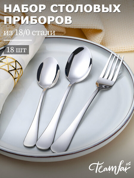 Набор столовых приборов Teamfar на 6 человек (18 предметов) из высококачественной нержавеющей стали 18/0, устойчив к коррозии и долговечен. В комплект входят 6 чайных ложек, 6 вилок и 6 ложек с современным дизайном, удобными ручками и оптимальным весом. Идеально подходит для повседневного использования дома, в ресторане, на вечеринках и праздниках. Легко моется и сохраняет свой блеск даже при частом использовании. Элегантный внешний вид делает набор отличным подарком для родных и друзей на любой важный праздник.