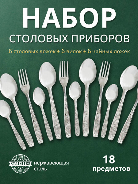 Набор столовых приборов - это высококачественный набор из 18 предметов, состоящий из 6 вилок, 6 ложек и 6 чайных ложек. Изготовленные из нержавеющей стали, эти столовые приборы обладают рядом преимуществ. Во-первых, они не окисляются, что обеспечивает долгий срок службы и сохранение первоначального внешнего вида. Во-вторых, нержавеющая сталь легко моется и не придает постороннего запаха, что делает использование этих приборов гигиеничным и приятным. Цвет набора - серебристый, что придает ему элегантный и современный вид. Набор столовых приборов предназначен для использования на 6 персон, что делает его отличным выбором для больших семей или праздничных мероприятий. Набор поставляется в удобной упаковке-пакете, что делает его отличным вариантом для подарка. В целом, набор столовых приборов - это надежный, практичный и стильный выбор для тех, кто ценит качество и комфорт на своей кухне.