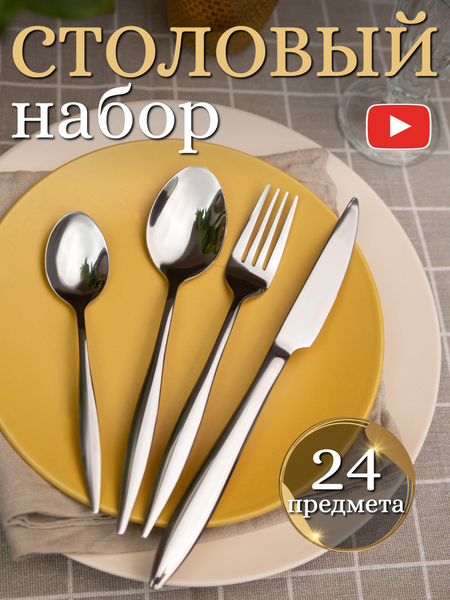 Набор столовых приборов серебро "Капля" - это изысканный выбор для тех, кто ценит качество и стиль. В комплект входит 24 предмета, что позволяет сервировать стол на 6 персон.