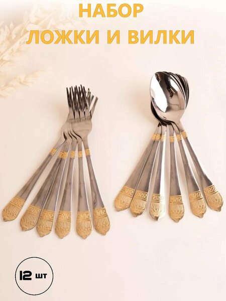 Комплект кухонных принадлежностей из 12 предметов, куда входят красивые ложки и вилки серебряного цвета с золотым напылением, станет роскошным дополнением для сервировки как праздничного, так и ежедневного стола и готовки дома. Глянцевый набор столовых предметов выполнен из качественной пищевой нержавейки, которая не имеет запаха, не отдает металлическим привкусом, сохраняя свой неизменный вид в течение долгого срока службы. Сервировочный набор, состоящий из 6 ложек и 6 вилок, с защитным покрытием, подойдет не только для домашнего использования, но и для кафе или ресторана. Стильные и оригинальные приборы прекрасно подойдут для сервировки на свадебном торжестве, юбилее или вечеринке. Модная кухонная утварь с золотистым покрытием идеально подходит для подачи различных блюд - завтраков, десертов или обеденных закусок. Интересные и необычные столовые приборы подойдут и для ресторанного комплекса, и для обычного бытового домашнего или дачного использования. Сувенирные ложечки и вилки в классическом стиле оценят ваши взрослые и юные гости. Такая посуда является идеальным подарком для любого праздника: на день рождения свадьбу Новый год. Этот подарок может быть как мужской, так и женский. Сервиз из нержавеющей стали идеален для молодожен или супругов, проживших вместе долгие годы. Это будет прекрасный презент для мужчин, женщин! Вы можете сделать приятный сюрприз и подарить этот набор любимой жене или сестре бабушке или тете. Подарочный набор можно включить в походный инвентарь, ведь вилки удобней, чем одноразовые. Также, они подойдут для приготовления еды, например супа, во время отдыха на природе похода или даче. Кухонные и кулинарные принадлежности - это лучший подарок для любимых.