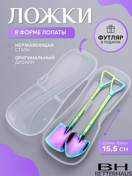Новинка! Эксклюзивный набор ложек в виде лопаты вызовет восторг у каждого. Десертные ложки BETTERHAUS очень качественно исполнены из нержавеющей стали с зеркальной полировкой, имеют оригинальную форму лопасти и черенка с отверстием для подвешивания. Ложка чайная может использоваться как оригинальный столовый прибор. Этот подарочный набор может использоваться как сувенир в качестве подарка. А также как десертная ложка для оригинальной подачи десертов и фруктов, таких как торт, пудинг, мороженое, пирожное, маракуйя, манго, арбуз, тирамису, десерты желе, а также для холодца, икры и как кофейная или чайная ложка для сахара и варенья, для сахарницы. Такие ложечки придадут крайне оригинальный вид при подаче десертов и других блюд. Эти столовые приборы также понравятся детям. В набор входит две ложки в виде лопат разных форм. Ложка загребушка. Такие чайные, кофейные, десертные ложки идеальны для сервировки дома, в ресторане и кафе. Идеальный креативный подарок для вас и ваших близких: мужчине женщине подруге другу маме папе мужу жене бабушке дедушке дочке сыну внуку коллеге начальнику на день Рождения Новый год юбилей 8 марта 23 февраля пасху выпускной годовщину. Чайные ложки в форме лопатки изготовлены из высококачественной нержавеющей стали. Удобная, но в то же время необычная форма ложечки приятно ложится в руку, хорошо держит форму, а при использовании изгиб не дает высыпаться или пролиться продукту. Ложка подходит для дома на праздник или в повседневное использование, для офиса, взрослому, ребенку и детям. Стильный, изысканный дизайн порадует любого непременно! Ложка лопата отличный сюрприз любимому, который не оставит никого без внимания, улыбки. Наш товар представлен в нескольких цветовых вариантах: серый серебристый , золотистый желтый , бирюзовый . Каждый найдет себе ложечку по вкусу!