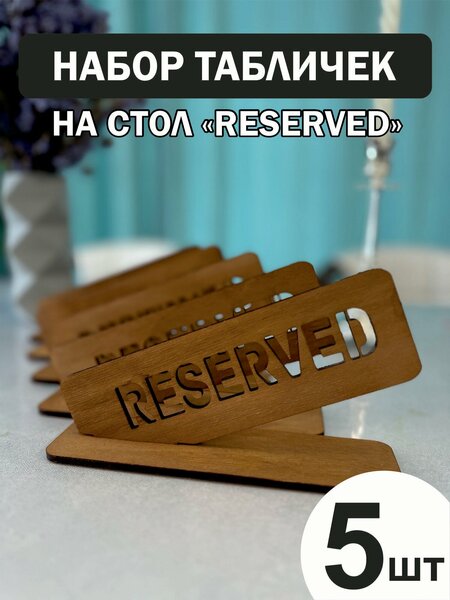 Настольная табличка с гравировкой RESERVED, резерв, зарезервировано, стол забронирован, стол занят. Тейбл тент Зарезервировано размещается на столе, который был заранее забронирован гостем. Сделайте процесс бронирования столика быстрым и удобным для своих клиентов. Наши информационные таблички с надписью "Reserved" или "резерв" позволят гостям сразу понять, что столик занят и необходимо выбрать другое место. Благодаря стильному дизайну и высококачественным материалам, наши таблички впишутся в интерьер вашего заведения, подчеркивая его уникальность. Подходит для кафе, бара, паба, ресторана, ночного клуба, столовой. Не упускайте возможность улучшить обслуживание и повысить уровень комфорта для своих гостей. Закажите информационную табличку RESERVED прямо сейчас и обеспечьте своим клиентам отличный сервис! При сборке таблички рекомендуем воспользоваться ПВА клеем.