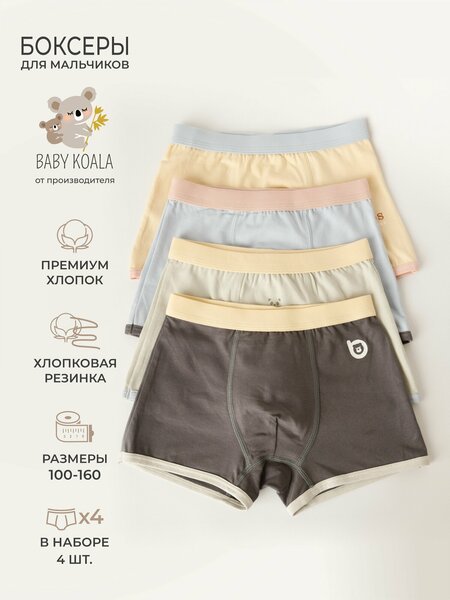 Комплект трусов для мальчика 4 шт. – базовое и практичное нижнее белье для детей и малышей, которое обеспечит свободную посадку, а также имеет широкие боковые части и похожи на шорты. Оно изготовлено из мягкого, натурального хлопка, который приятен к телу и обеспечивает комфорт в течение дня (содержит 95% хлопка), с добавлением эластана (5%) для придания эластичности и создания идеальной посадки на бедрах. Фасон пошива разработан соответственно с физиологическими особенностями детей. Мягкая эластичная резинка пояса создает хорошую посадку и комфорт на талии малыша. Трусики не давят на животик ребенка и не оставляют следов на теле. Эластичность пояса также позволяет легко надевать и снимать данное бельё. Для предотвращения раздражения нежной детской кожи, трусы обтягивающие в полоску имеют мягкие, гладкие и плоские швы. Боксеры подростковые для мальчика обладают повышенной износостойкостью, не теряют яркость цвета после стирки и не скатываются, сохраняя свою форму и качество на протяжении длительного периода использования, а однотонный дизайн прекрасно сочетается с любой одеждой, что позволяет носить их в любой ситуации - дома, на прогулке, в детском саду или школе. Выбирая, боксеры для своего ребенка, вы делаете правильный выбор в пользу комфорта и стиля. Трусы-шорты плотно облегают, при этом совсем не стесняют движений.