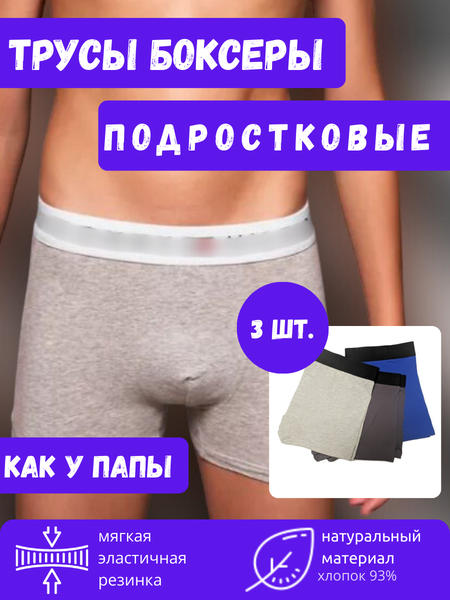 Мужские трусы-боксеры набор 3 в 1. Идеально подойдут для мальчика подростка. Дорогие друзья! Представляем вам идеальный выбор для комфортного гардероба — мужские трусы-боксеры от Mentrus. В этом наборе вы найдете три высококачественных изделия, которые станут незаменимой частью вашего нижнего белья. Почему стоит выбрать наши боксеры? * Комфорт и свобода движений. Трусы-боксеры имеют удлиненную форму, которая обеспечивает свободу движений и комфорт в течение всего дня. Они идеально подходят для повседневной носки и спортивных занятий. * Натуральные материалы. Эти боксеры изготовлены из высококачественного хлопка, который обеспечивает отличную воздухопроницаемость и впитываемость. Хлопковая ткань мягкая и приятная на ощупь, не вызывает раздражения кожи. * Стильный дизайн. Цвет боксеров — это классический и универсальный вариант, который подойдет к любому гардеробу. Простой и лаконичный дизайн делает эти трусы идеальным выбором для мужчин, ценящих стиль и качество. * Практичность. Набор из трех трусов-боксеров позволит вам всегда иметь под рукой чистую и свежую одежду. Это отличный вариант для тех, кто ценит практичность и удобство. Преимущества покупки набора трусов-боксеров: * Выгодная цена. Приобретая набор из трех трусов, вы экономите по сравнению с покупкой каждого изделия по отдельности. * Гарантия качества. Mentrus — славится своим качеством и вниманием к деталям. Вы можете быть уверены, что приобретаете действительно хорошую вещь. * Широкий размерный ряд. В нашей коллекции представлены трусы-боксеры различных размеров, чтобы каждый мужчина мог найти подходящий вариант. Не упустите возможность обновить свой гардероб стильными и комфортными трусами-боксами! Они станут отличным дополнением к вашему нижнему белью и обеспечат вам комфорт на протяжении всего дня. Сделайте свой выбор в пользу качества и стиля — выберите мужские трусы-боксеры.