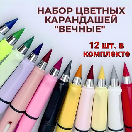 Набор цветных карандашей 12 штук. В комплекте ластик в каждом карандаше. Набор цветных карандашей "Вечные" для рисования предлагает 12 ярких и насыщенных цветов для создания уникальных рисунков. Особенностью этих карандашей является их долговечность и удобство использования. Вечные цветные карандаши не требуют заточки. Стержни карандашей не ломаются и не затупляются, что делает их вечными. Они пишут ярко и ровно, а также имеют сменные наконечники на резьбе, что позволяет легко менять их при необходимости. Каждый карандаш оснащен ластиком, который поможет удалить ошибки и неточности при рисовании. Набор карандашей предназначен для детей и взрослых, так как они подходят как для левшей, так и для правшей. Твердость грифеля карандашей составляет HB, что делает их подходящими для различных видов рисования. В целом, набор цветных карандашей "Вечные" это отличный подарком для ребенка, который любит рисовать и стремится к совершенству своих работ.
