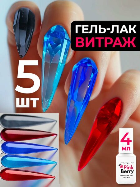 Витражный набор гель лаков для маникюра 5 шт по 4 мл. Яркий, чистый равномерный цвет, максимально прозрачный как стекло. Витражный гель лак – это шедевр в ногтевой индустрии, идеальное сочетание качества и популярности. Самые востребованные цвета в одном наборе - 5 шт. Мы позаботились о вашем творческом порыве, и включили в набор все популярные оттенки – синий, красный, голубой, сине-черный, бордовый. Профессиональный подход при создании формулы гель – лака гарантирует легкость в нанесении - без видимых полос и неровностей. Шеллак самовыравнивающийся. Интенсивный цвет витража позволяет окрашивать другие виды покрытий для ногтей, создавая свой уникальный материал. Эффекты, создаваемые с их помощью, украсят любой маникюр. Этот гельлак станет блестящим акцентом созданного образа, привлекая восхищенные взгляды. Спасибо за выбор Pinkberry!