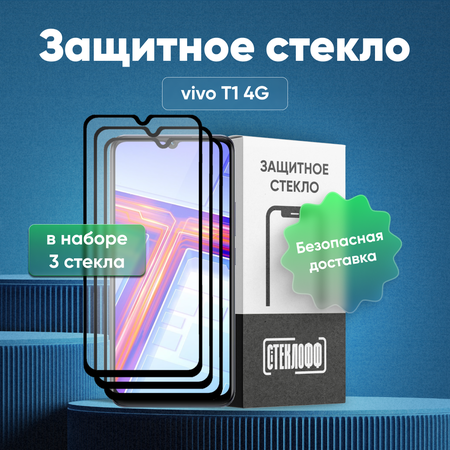 Набор защитных стекол для vivo T1 4G c полным покрытием, серия Стеклофф Base, 3 шт