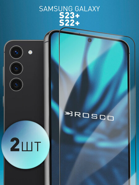 Набор защитных стёкол Rosco на Samsung Galaxy S22+ и S23+ (Самсунг Галакси С22+ и С23+), с чёрной рамкой, 2 шт