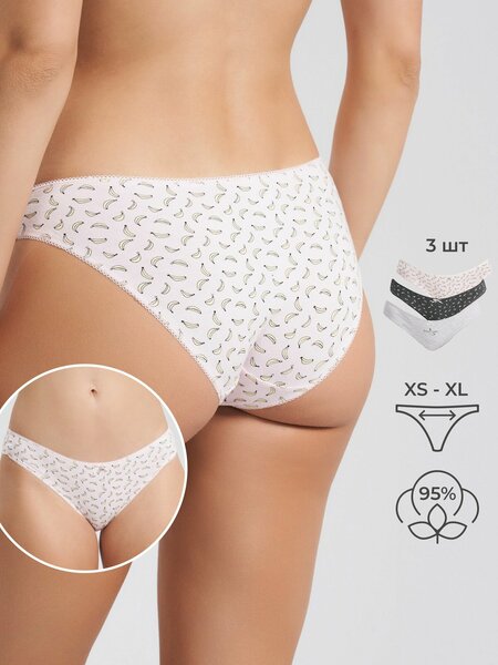 Сложно представить будни без набора удобного нижнего белья. Трусы-слипы идеальны на каждый день, так как они комфортны при носке и незаметны под одеждой. Трусики изготовлены из хлопка с добавлением эластана, который придает белью прочность, износостойкость и способность хорошо держать форму. Дышащая ткань позволит Вам с удовольствием носить трусы на повседневной основе, даже в самые жаркие дни. Эти слипы прекрасно подойдут и высокой, и невысокой представительнице прекрасного пола. Трусы-слипы идут комплектом, по 3 штуки, что делает Вашу покупку еще более выгодной.