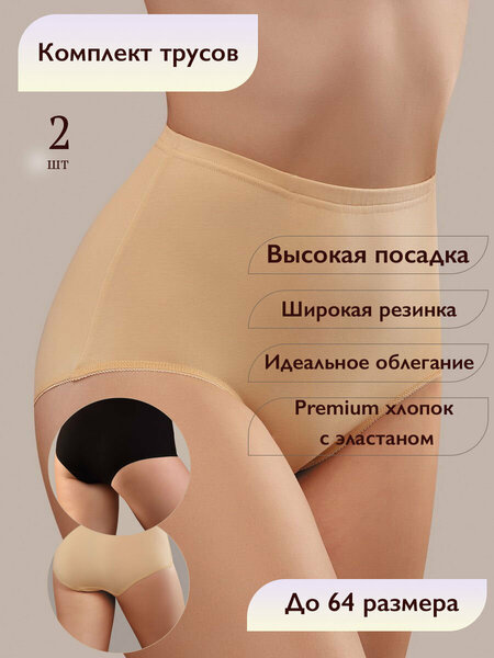 Набор женских трусов хлопок больших размеров с завышенной талией 2 шт.