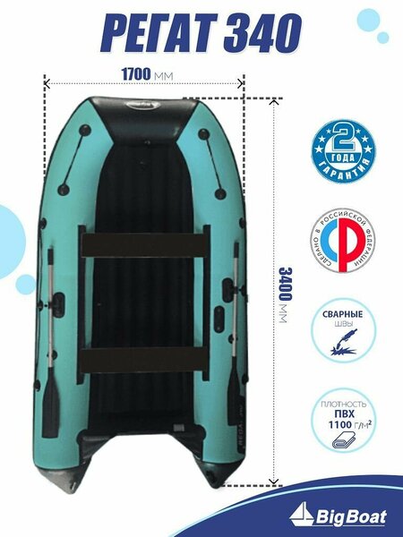 Лодка Regat 340 является транцевой лодкой с габаритными размерами 3400х1700 мм и диаметром бортовых баллонов 460 мм. Грузоподъемность этой лодки до 480 кг. Лодка состоит из 3 независимых надувных отсеков, позволяющих сохранить плавучесть лодки даже при аварийном проколе 2 из них Материал и комплектующие для наших лодок высокого качества и от надежных поставщиков. ПВХ-ткань имеет следующие характеристики: - высокую прочность на механические воздействия (разрыв, порез, прокол и т. д.); - достаточную эластичность; - воздухонепроницаемость; - устойчивость к воздействию окружающей среды (вода, солнце и т. д.) Каждая лодка укомплектована удобными и практичными лавками, которые свободно можно перемещать вдоль борта лодки. Также в стандартную комплектацию лодки входят весла длиной 1,6 м. Лодки из серии Regat за счет НДНД просты в сборке и имеют мягкий ход на небольшой волне. Для этих лодок подходящими условиями эксплуатации являются крупные водоемы и море. Подходят как для спокойного плавания, так и для экстремальных спусков по горным рекам Лодки ПВХ с НДНД – это современные изделия, которые имеют много преимуществ по сравнению с аналогичными плавательными средствами с другим типом днища. При сильных волнах конструкция лодки с НДНД снижает к минимуму все удары. Лодка с НДНД удобна в эксплуатации, сбор и разбор лодки проходит без труда Достоинства лодок с НДНД: - дополнительный надувной отсек, т. е. возможность оставаться на плаву в случае повреждения двух баллонов; - легкость сбора и разбора лодки (нет необходимости в сборке жесткого пайола); - удобство транспортировки (в одной сумке); - износостойкость – подверженность к истиранию материала меньше, чем у лодок с жестким пайолом; - обеспечение «мягкого хода» на больших волнах; - за счет уменьшения площади соприкосновения с водой быстрый ход на глиссере; - улучшение килеватости за счет низкого расположения дна относительно баллонов; - теплоизоляция не только на воде, но и на суше (можно использовать в качестве спального места) · Длина габаритная (мм): 3400 · Ширина габаритная (мм): 1700 · Высота транца (мм): 381 · Вместимость (кол-во человек): 4 · Грузоподъемность (кг): 480 · Вес по умолчанию (кг): 43 · Допустимая мощность мотора (л. с): 15 · Материал пвх, плотность (гр/м2): 1100 · Размеры сумки с лодкой (мм): 115*58*30 · Диаметр баллона (мм): 460 · Количество отсеков (баллон): 3 · Киль (баллон): есть · Тип пайола (вид): нднд · Гарантия (год): 2 · Габариты кокпита: 78*245 · Швы: сварные Стандартная комплектация: • Лодка 1шт; • Весла 2шт; • Лавка 2шт; • Насос лягушка 1шт; • Сумка для лодки 1шт; • Сертификат соответствия; • Руководство по эксплуатации.