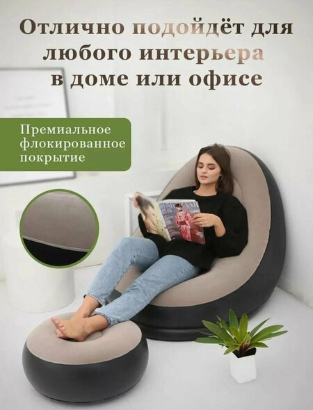 Надувное кресло с пуфом, для отдыха с пуфиком, +Насос в ПОДАРОК