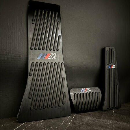 Комплект качественных накладок на педали BMW версия Performance, без сверления состоит из накладки на педали тормоза и накладки на педаль газа + левая площадка. Подходит на автомобили: X5 F15 X6 F16 Материал алюминиевый сплав. Цвет черный. В комплекте 3 накладки: газ, тормоз и на площадку отдыха. Для установки необходимо снять штатную резиновую накладку с педали тормоза и установить вместо нее накладку из комплекта. Накладка на педаль газа надевается сверху вниз как чехол и тщательно фиксируется на педали за счет боковых выступов. Накладка на площадку отдыха фиксируется на качественный двухсторонний скотч.