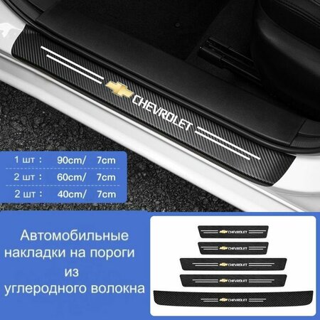 Защитные накладки на порог автомобиля состоят из - 2 шт 60х7 см, 2 шт 40х7 см и 1 шт 90х7 см из углеродного волокна. В процессе эксплуатации автомобиля сильно страдает лакокрасочное покрытие внутренней части порогов для этого и подойдет защита порогов автомобиля . Накладки на пороги авто нужны когда повреждаются пороги: при посадке-высадке водителя или пассажира, особенно это актуально при перевозке в автомобиле детей, которые в силу своего роста, наступают на внутреннюю часть порога. Защитные накладки на внутренние части порогов дверей помогают предотвратить повреждение лакокрасочного покрытия, защитить порог от царапин и сколов. В том случае, если верхняя поверхность порогов дверей Вашего автомобиля уже повреждена, с помощью установки накладок на порог вы сможете скрыть все недостатки.