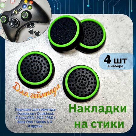 Накладки на стики для геймпада 4шт. Подходит для Sony PS5 DualSense, PS4 DualShock и PS3, Xbox 360, Xbox One (Сони ПС5 Дуалсенс, ПС4 Дуалшок и ПС3, Иксбокс 360, Иксбокс Ван) QBuy.