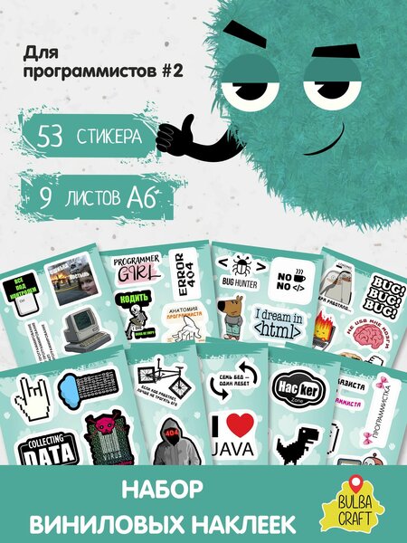 Добавьте яркие акценты в повседневную жизнь с набором наклеек "Для программистов #2"! Этот уникальный комплект состоит из 53 виниловых стикеров, расположенных на 9 листах формата А6. Он идеально подходит для декорирования ваших любимых предметов и создания индивидуального стиля. Подходит для оформления телефона, ноутбука, чехлов, ежедневников, блокнотов и даже велосипедов. Модные стикеры не боятся воды и солнца, потому что сделаны из виниловой плёнки высокого качества. Это трендовый подарок для всех современных программистов! В нём так много разноцветных стикеров, что вы сможете создать именную коллекцию и поделиться частью своего набора с друзьями! Декоративные наклейки отлично подойдут для творчества и оформления блокнотов для рисования, скетчбука и скрапбукинга. А как красиво они будут смотреться в фотоальбоме! Вы можете приклеить их на тетради или использовать для создания удивительных открыток и подарков для парня или папы. Всем понравится получить поздравление с крутой наклейкой на подарочной упаковке! Подростки и студенты, готовьтесь преобразить свои комнаты! Эти самоклеящиеся стикеры идеально подойдут для украшения вашего пространства: окон, стен, зеркал и шкафа. С ними эстетика обеспечена. И да, эти виниловые наклейки не только для бумаги, но и для чехла телефона, клавиатуры, ноутбука или планшета. Представьте, как ваш гаджет будет выделяться! А чтобы создать цепляющий вайб, разместите эти красивые наклейки на чемодан, power bank или зарядное устройство. Хотите повеселиться? Обклейте бутылку для воды или сделайте прикольный подарок для друга, приклеив смешной стикер на кружку. Наклейки не боятся воды и солнечного света, так что смело клейте на велосипед, самокат, скейт, питбайк или мопед и авто! Они подойдут для декора любого музыкального инструмента, включая гитару! Школьники обожают прикольные самоклеящиеся картинки для украшения своих канцелярских принадлежностей. Не упустите шанс порадовать мальчика-подростка! Мемные рисунки обязательно понравятся молодёжи. Этот набор стикеров станет крутым подарком на День рождения, Новый год или просто так, без повода. Большой стикерпак от BulbaCraft - просто супер подарок мужчине.