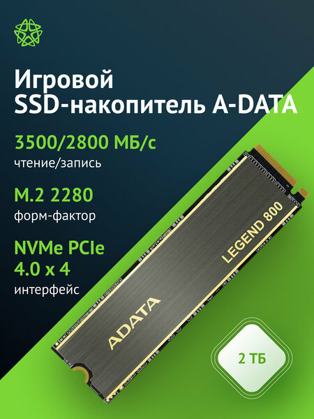 Накопитель SSD A-Data PCIe 4.0 x4 2TB ALEG-800-2000GCS Legend 800 M.2 2280 - это внутренний твердотельный накопитель, который обеспечивает высокую скорость работы и надежность хранения данных. Благодаря интерфейсу синхронизации PCIe Gen4 x4 с поддержкой стандарта NVMe 1.4, данный накопитель обеспечивает скорость чтения до 3500 Мбайт/сек. Это позволяет быстро и эффективно выполнять операции с данными, что особенно важно для требовательных к скорости приложений. Накопитель поддерживает технологии NVMe и поддержку секторов размером 4 КБ, что обеспечивает более быстрое и плавное выполнение операций. Накопитель оснащен разъемом M.2 2280 и совместим с платформами Intel и AMD. Это позволяет использовать его в различных системах, включая ноутбуки, настольные компьютеры и серверы. Время наработки на отказ составляет 1500000 часов, что гарантирует долгосрочную и стабильную работу накопителя. Размеры накопителя составляют 80x22x2.65 мм, а его вес - 7.3 г. Это делает его компактным и легким, что позволяет легко установить его в любое подходящее место. В комплект поставки входят накопитель, документация и упаковка.