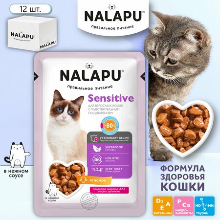 Корм для кошек влажный NALAPU Sensitivе представляет собой высококачественный полнорационный консервированный корм, специально разработанный для взрослых кошек с чувствительным пищеварением. Каждый пакетик содержит сочные кусочки с ягненком, аккуратно помещённые в нежный соус, который обеспечивает не только великолепный вкус, но и оптимальное усвоение. Этот влажный корм подойдет даже самым привередливым пушистым гурманам, предоставляя им возможность наслаждаться каждым укусом. Формула корма учитывает особенности чувствительного желудка, обеспечивая комфортное пищеварение и минимизируя риск пищевых расстройств. Кусочки мяса в соусе легко жуются и хорошо усваиваются, что делает корм идеальным вариантом для кошек, испытывающих трудности с традиционными сухими кормами. Каждый пакетик весом 77 граммов удобно использовать, ведь зачастую кошки предпочитают маленькие порции. Упаковка состоит из 12 штук, что позволяет долго наслаждаться кормом без необходимости частой покупки. Более того, консервы остаются свежими и вкусными, что обеспечивает вашему питомцу разнообразное и полноценное питание. Состав корма включает в себя высококачественные ингредиенты, что делает его превосходным выбором для заботливых владельцев. С добавлением витаминов и минералов, она поддерживает здоровье кожи и шерсти, а также обеспечивает вашему любимцу необходимую энергию для активного образа жизни. Влажный корм для кошек NALAPU Sensitivе не содержит искусственных добавок, что гарантирует натуральный вкус и безопасное питание. С учетом того, что многие кошки имеют индивидуальные потребности в питании, этот консервированный корм является замечательным выбором для тех, кто хочет предложить своему питомцу что-то особенное. Он не только вкусный, но и полезный, что является приоритетным для здоровья вашего четвероногого друга. Важно, чтобы корм не вызывал аллергических реакций и был легко усваиваемым, что делает данный продукт отличным выбором для чувствительных кошек. Попробуйте NALAPU Sensitivе, и вы убедитесь сами, как ваша кошка будет счастлива порадовать себя этим вкусным лакомством. Приучите своего любимца к качественному питанию от NALAPU, чтобы увидеть, как он будет полон энергии и жизненной силы. Убедитесь, что ваш питомец получает исключительно качественные и сбалансированные продукты, которые разрабатываются с заботой о его здоровье.