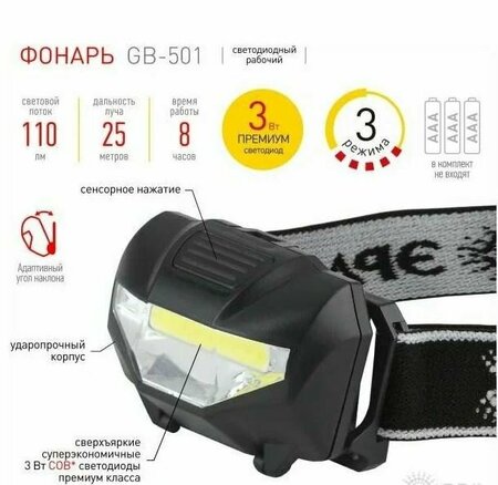 Налобный светодиодный фонарь «блэкджек» — яркий, надёжный и практичный. Фонарь оснащён светодиодом нового поколения СОВ, который ярче и эффективнее обычных на 50%. Такой светодиод позволяет получать более качественный свет, а цветовая температура приближена к естественному освещению. Дальность луча составляет 25 метров, а мощность — 3 Вт. Фонарь работает от батареек типа ААА, 8 часов без перерыва в самом мощном режиме. Всего режимов в фонаре 3. Фонарь освещает большую площадь, так как имеет широкий угол освещения. Это надёжный и практичный инструмент для тех, кому необходим дополнительный источник освещения. Такой фонарь станет отличным помощником на даче, на рыбалке, в походе или в любых бытовых ситуациях, когда необходимо оставить руки свободными. Корпус выполнен из ударопрочного пластика, который защищает фонарь от механических повреждений. Крепится фонарь с помощью эластичного ремешка. К достоинства фонаря можно отнести: ударопрочный корпус, яркость, дальность освещения, большой радиус освещения, компактность, лёгкость и практичность.