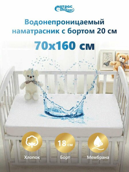 Наматрасник 70х160 см защитный водонепроницаемый Мулетон-Аквастоп, детский с бортом микрофибра 20 см Защитный наматрасник изготовлен из высококачественной ткани и представляет собой отличное решение для защиты матраса от загрязнений, влаги и износа. Простыня защитная идеально подходит для детской кровати или дивана и обеспечивает надежную защиту спального места. Чехол на матрас детский имеет водонепроницаемую мембрану, которая предотвращает проникновение жидкости внутрь. Это позволяет сохранить матрас в чистоте и сухости, что особенно важно для детей. Наматрасник легко стирается и быстро сохнет, сохраняя свою форму и свойства после стирки. Благодаря резинке по всему периметру наматрасника он надежно фиксируется на матрасе, не скользит и не скатывается во время сна. Это обеспечивает дополнительный комфорт и безопасность для вашего ребенка. Приобретая наматрасник, вы получаете качественный товар по доступной цене. Мы предлагаем скидку на этот товар, а также регулярно проводим распродажи, чтобы сделать его еще более доступным. Не упустите возможность приобрести наматрасник по выгодной цене! Обеспечьте своему ребенку здоровый и комфортный сон с помощью наматрасника 70x160см защитного водонепроницаемого Мулетон-Аквастоп.