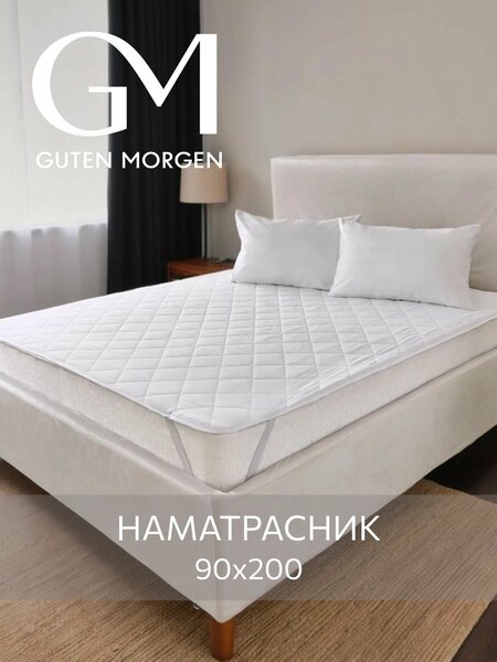 Наматрасник стеганый 90х200 см с резинками по углам надежно фиксируется на матрасе высотой до 25см, защищая его от загрязнений и преждевременного износа. Волокна наполнителя внутри имеют воздушный канал в продольном направлении, что делает их более мягкими , а также способствует повышенному воздухообмену. Наполнитель полое силиконизированное волокно - Эстрелль не сбивается, не сминается, полностью гипоаллергенен, устойчив к размножению вредных микроорганизмов. Чехол наматрасника 90 на 200 выполнен из мягкой и приятной микрофибры. Наматрасник GUTEN MORGEN обладает прекрасными вентилирующими и теплозащитными свойствами, при этом сохраняется комфортная для отдыха температура поверхности изделия, сон будет комфортным даже в жаркие летние ночи.