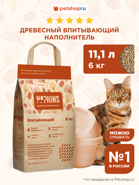 Профессиональная линейка наполнителей Napkins В ассортименте представлены различные типы наполнителей для кошачьего туалета, каждый из которых имеет свои уникальные характеристики и преимущества: Впитывающие наполнители Napkins - Впитывающий наполнитель с активированным углем — инновационное решение с антибактериальным эффектом, эффективно нейтрализующее запахи - Впитывающий наполнитель, крупная фракция — идеален для крупных пород кошек, обеспечивает максимальную защиту от протекания - Впитывающий наполнитель, мелкая фракция — оптимальный выбор для котят и мелких пород, предотвращает рассыпание - Впитывающий наполнитель, средняя фракция — универсальный вариант для всех возрастов и пород - Впитывающий наполнитель средняя фракция, минеральный fresh — 100% натуральный состав без запаха - Впитывающий наполнитель крупная фракция, минеральный fresh plus — натуральный состав с повышенной впитываемостью Комкующиеся наполнители Napkins - Комкующийся наполнитель — базовое решение для эффективного контроля запахов - Древесный комкующийся наполнитель — экологичное решение из натуральных материалов - Комкующийся наполнитель Классик плюс — 100% натуральная глиняная формула без отдушки - Древесный комкующийся наполнитель premium comfort — с ароматом хвои, без пыли Древесные наполнители Napkins - Древесный наполнитель (не комкуется) — экономичное решение для ежедневного использования - Древесный впитывающий наполнитель premium forest — 100% натуральный продукт с ароматом хвои, без пыли Растительные наполнители Napkins - Кукурузный наполнитель — экологичное решение из натуральных компонентов - Растительный комкующийся наполнитель «Зеленый чай» — с приятным ароматом зеленого чая - Растительный комкующийся наполнитель «Персик» — нежный фруктовый аромат - Растительный комкующийся наполнитель — базовая формула Силикагелевые наполнители Napkins - Силикагелевый наполнитель без запаха — высокоэффективное решение для контроля запахов - Силикагелевый наполнитель с ароматом яблока — свежий фруктовый запах - Силикагелевый наполнитель с ароматом лаванды — успокаивающий аромат - Наполнитель силикагелевый Aqua Blue — специальная формула без отдушки Древесный наполнитель Napkins - экологически чистый, нетоксичный продукт из натуральной древесины, без добавок и примесей. Может быть использован для наполнения кошачьих туалетов, лотков для собак мелких и миниатюрных пород, кроликов, грызунов и сухопутных черепах. Способ применения: Насыпьте наполнитель в лоток слоем до 3 см, в лоток с сеткой - 1 см под сетку. Наполнитель можно смывать в канализацию небольшими порциями. Пеллеты: диаметр 5-7 мм, длина 3,2-40 мм