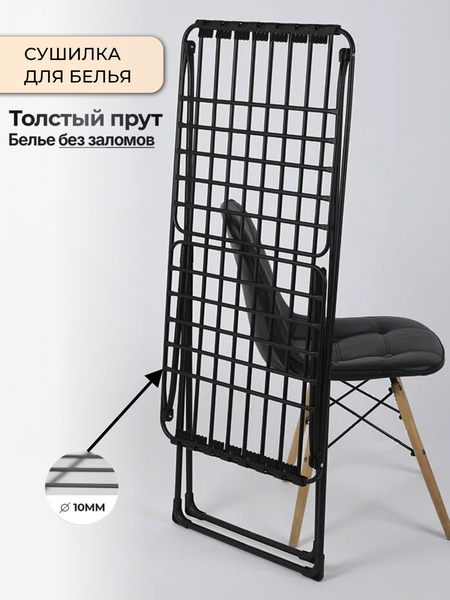 Достоинства:Толстые прутья – меньше вероятность заломов на одежде, крепкая металлическая конструкция – меньше риск поломки. Недостатки:Тяжеловата, нету элемента соединяющего два раздвижных крыла в свернутом состоянии, Комментарий:Как уже написал в плюсах и минусах: Толстые прутья – меньше вероятность заломов на одежде, крепкая металлическая конструкция – меньше риск поломки. Но при этом тяжеловата, нету элемента соединяющего два раздвижных крыла в свернутом состоянии, то есть, если поставить у стенки в вертикальном положении, одно из крыльев может выдвинуться само по себе, что не очень удобно.
