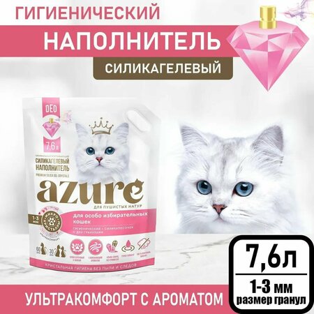 Наполнитель Azure для кошачьего туалета силикагелевый, впитывающий, для избирательных кошек, с део-гранулами 7,6 л