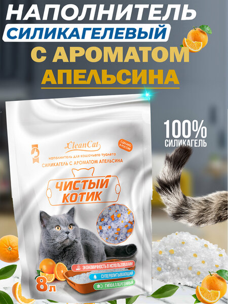 Впитывающий силикагелевый наполнитель Чистый котик - идеальное решение для тех, кто ищет лучший кошачий наполнитель для своего пушистого друга. Наш кошачий наполнитель является одним из лучших впитывающих наполнителей на рынке благодаря своей специальной формуле, которая была разработана, чтобы уменьшить запах и обеспечить довольно приятную атмосферу в Вашем доме. Наш кошачий наполнитель создан из высококачественных материалов, которые безопасны для здоровья Вашего питомца и прекрасно справляются с задачей впитывания жидкости, сохраняя туалет кошачьим чистым и свежим для него. Среди наших наполнителей кошачьего туалета вы можете выбрать силикагелевый наполнитель, который имеет отличную способность впитывать жидкость и эффективно бороться с запахом, или более традиционные впитывающие наполнители. В зависимости от Ваших потребностей, Вы можете выбрать из разных опций наполнителей для кошек, которые мы предлагаем. Кроме того, Вы можете купить наш кошачий наполнитель по доступной цене и сделать своего питомца счастливым и здоровым. Не верите на слово? Ознакомьтесь с отзывами наших клиентов и убедитесь сами! Мощное влагопоглощение и блокировка запаха: Наш силикагелевый наполнитель мгновенно усваивает влагу, оставляя лоток сухим и чистым. Он также эффективно контролирует неприятные запахи, предотвращая их распространение в вашем доме. Безопасность и комфорт для животного: Используя только крупные частицы самого высокого качества, мы гарантируем, что ваш кот не будет застревать в наполнителе, избегая возможных травм. Наш продукт также экологически безвреден и безопасен для здоровья животного в случае случайного проглатывания. Долговечность и экономичность: Частицы силикагеля очень прочные и не размягчаются под воздействием влаги, что делает их значительно долговечнее по сравнению с обычными наполнителями. Это позволяет вам использовать одну упаковку гораздо дольше, что экономически выгодно. Удобство использования: Наш силикагелевый наполнитель не пылит и не прилипает к шерсти вашего кота, что помогает сохранять чистоту в доме. Он также обладает бактерицидными свойствами, которые предотвращают размножение болезнетворных бактерий и организмов. Правила использования просты: Насыпайте наполнитель в лоток слоем не менее 3 см. Регулярно удалите твердые отходы. Перемешивайте наполнитель раз в день, чтобы активизировать его работу. Полностью заменяйте наполнитель не реже одного раза в месяц. Если в лоток ходит 2 и более кошек, рекомендуется менять наполнитель чаще. Обратите внимание, что силикагелевый наполнитель не должен быть выброшен в канализацию для утилизации. Размер гранул: 2-7 мм. Вес: 3,3 кг. Объем: 8 л. Добавленный аромат апельсина создает приятную атмосферу и освежает воздух вокруг лотка. Он позволит вашему дому сохранять свежесть и чистоту даже после использования. Заботьтесь о комфорте своего кота с силикагелевым наполнителем «Чистый котик». Попробуйте прямо сейчас!
