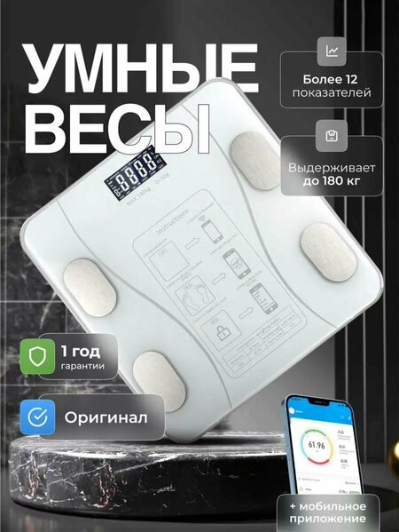 ✅Напольные умные весы с bmi – это современное устройство, которое поможет вам следить за своим здоровьем и весом. Они оснащены множеством функций, которые делают их незаменимыми для тех, кто заботится о своем теле. ✅Весы имеют максимальную нагрузку до 180 кг, что позволяет использовать их для людей с разным телосложением. Точность измерения составляет 100 г, что гарантирует высокую точность результатов. ✅Устройство оснащено множеством дополнительных функций, таких как измерение температуры воздуха, определение доли воды, жировой ткани, костной ткани, мышечной ткани и даже расчет индекса массы тела (BMI). ✅Весы поддерживают синхронизацию со смартфоном, что позволяет сохранять и анализировать результаты измерений. Устройство имеет 4 режима работы: атлетический, детский, гость и только масса тела. ✅Платформа весов изготовлена из закаленного стекла, что обеспечивает долговечность и надежность устройства. Материал платформы также устойчив к царапинам и ударам. ✅Весы оснащены памятью на 6 измерений, что позволяет отслеживать динамику изменений. ✅Устройство работает от двух батареек типа AAA, которые идут в комплекте. ✅Напольные умные весы с bmi – это надежный и удобный инструмент для тех, кто хочет следить за своим здоровьем и весом.