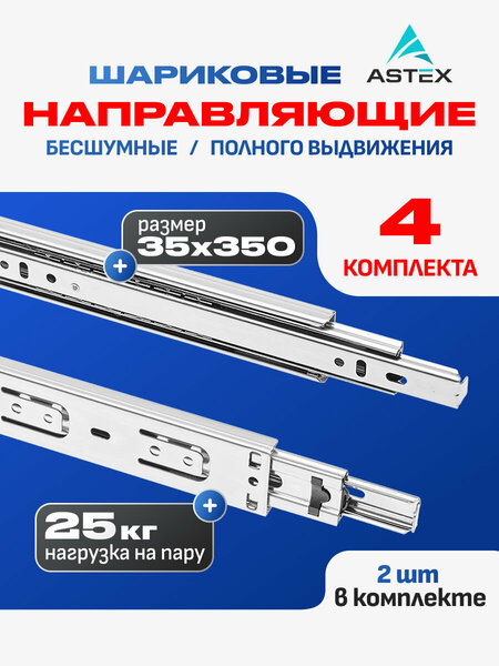 Выдвижной ящик - функциональный мебельный элемент. Отличительная особенность выдвижного органайзера - его практичность и компактность с точки зрения интерьера. Обязательной механической составляющей, посредством которой органайзер выдвигается и задвигается, являются металлические направляющие, устанавливаемые с левой и правой стороны. Шариковые направляющие полного выдвижения H 35 мм длиной 350 мм - более предпочтительная разновидность мебельной фурнитуры с точки зрения практических характеристик. В нашей упаковке 8 направляющих для мебели. Их телескопический механизм обеспечивает полный доступ к пространству ящика, а их ход мягкий и бесшумный. Шариковые полозья полного выдвижения состоят из трёх рельсов один в другом, катающихся на стальных шариках, как в подшипнике. Для монтажа конструкцию нужно разобрать. Это сделать довольно просто. Выдвигаем её на всю длину и нажимаем на усик. Телескопические рельсы H35 выдерживают нагрузку до 25 кг. Наша конструкция с доводчиком - это механизм плавного закрывания. Преимущества: выдерживают большие нагрузки, отличные эксплуатационные характеристики, мягкий и бесшумный ход при закрывании/открывании, полное выдвижение ящика. Правильная установка механизма - это дополнительная гарантия его длительной и безотказной работоспособности.