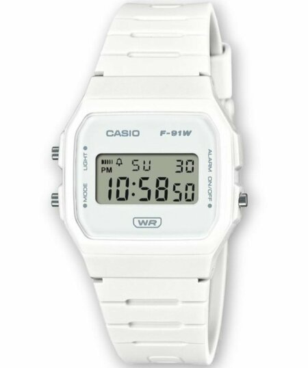 Наручные часы унисекс Casio F-91WB-7A. Японский кварцевый механизм с цифровой индикацией на жидкокристаллическом дисплее. Электрическая микроподсветка с источником света, расположенным сбоку циферблата. Отображение часов, минут и секунд. Формат времени 12/24-часовой. Автоматический календарь учитывает количество дней в месяцах, включая 28 в феврале. Отображение даты и дня недели и месяца. Секундомер с точностью измерений 1/100 сек, общее время измерений 59'59.9'. Ежедневный будильник, устанавливаемый на определенное время. Корпус из твердого и долговечного пластика. Водонепроницаемость 3 АТМ защитит Ваши часы от брызг и дождя. Задняя крышка из нерж. стали на 4 винтах. Ремешок из полимерного материала - прочного и долговечного, стандартная застежка.