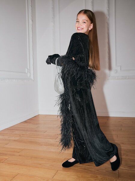 Детские трикотажные брюки, украшенные пайетками, представляют собой великолепную модель из новогодней коллекции, которая обязательно привлечет внимание! Эти брюки свободного силуэта обеспечивают максимальный комфорт в ношении, позволяя детям легко двигаться, танцевать и участвовать в активных играх. Внутренний подклад из мягкой кулирной глади делает каждое движение приятным, а верхний слой из велюра с пайетками создает эффект мерцания, добавляя праздничного настроения. Пояс на резинке гарантирует удобную и надежную посадку на различных типах фигур, что особенно важно для активных детей. Боковые карманы не только делают брюки более стильными, но и добавляют функциональности, позволяя хранить мелкие вещи. Чтобы создать завершенный образ, дополните эти брюки блузкой из той же ткани (20240270111) — так вы получите стильный комплект, идеально подходящий для праздников, ёлок и вечеринок. Этот наряд станет отличным выбором для создания ярких и запоминающихся образов в праздничный сезон! 20240160073