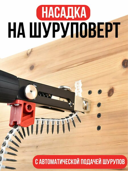 Насадка на шуруповерт с автоматической подачей шурупов, цепной-саморез адаптер для дрели Приспособление / переходник / пистолет для дрели, адаптер для быстрой выдачи саморезов на ленте, инструмент для авто вкручивания болтов С насадкой на шуруповерт с автоматической подачей шурупов вы значительно ускорите и облегчите монтажные работы. Пистолет с быстрой подачей болтов изготовлен из высококачественной нержавеющей стали и премиум ABS-пластика. Адаптер оснащен специальным металлическим креплением для ленты с саморезами, с помощью которой подача осуществляется без ровно без зацепов. Инструмент оснащен ручками для регулировки глубины закручивания винтов и регулировкой под размер используемого крепежа. Авто подача болтов будет полезна при монтаже гипсокартонная к потолку или стене. Так как в данном случае необходимо закрутить сотни саморезов.
