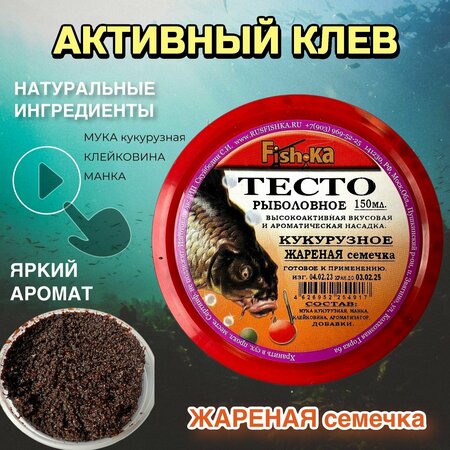 Кукурузное тесто рыболовное 150 мл Fish.Ka высокоактивная вкусовая ароматическая насадка. Готовое к применению. Готовое тесто используется на рыбалке в качестве насадки. Достать из банки небольшой кусочек теста, скатать шар или цилиндр, насадить на крючок и сделать заброс в место ловли. Тесто растворяется в воде, отдавая слой за слоем насыщенные компоненты для привлечения рыб. Можно использовать тесто как связующий материал с добавлением в фидерные кормушки. Из теста можно создавать любые формы насадок, придавать дополнительные свойства, оболочки другим естественным или искусственным насадкам. Тесто всегда свежее и не портится в течении долгого времени. Никаких консервантов. Если тесто стало твердым, его можно смочить маслом подсолнечным и оно станет мягким и ароматным. Фасуется в баночки 150мл.
