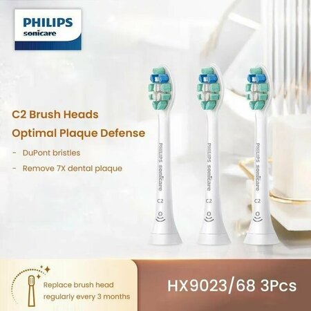 Насадки для электрической зубной щетки Philips Sonicare C2 HX9023/67, для оптимальной защиты от зубного налета, 3 шт