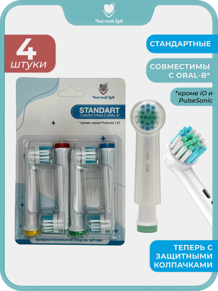 4 шт. Насадки для зубной щетки oral b чистый ЗУБ STANDART для электрических зубных щеток Braun (EB17-X Precision clean)