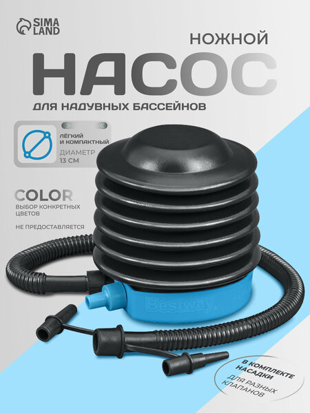 Насос ножной Bestway, 2 насадки, цвет МИКС, функция сдувания