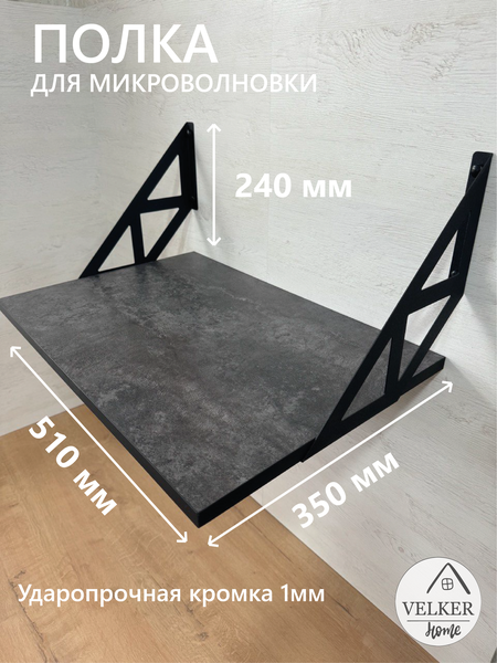 Настенная полка, ЛДСП, металл, для СВЧ-печи и принтера, универсальная, цемент темный