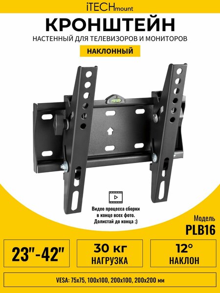 Комплектация: ✅ Кронштейн с механизмом наклона ✅ Крепеж для стены и телевизора ✅ Пузырьковый уровень ✅ Иллюстрированная инструкция Закажите настенный кронштейн для телевизора iTECHmount PLB16 – и наслаждайтесь комфортным просмотром без лишних проводов!